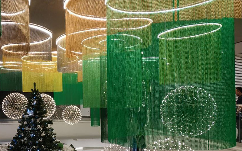 Aanpasbare grootte aluminium keten scherm gordijnen bieden een aantrekkelijke en functionele oplossing voor tentoonstellingszalen, commerciële ruimtes en decoratieve toepassingen.0 mm draadconstructie biedt duurzaamheid en behoudt een elegant uiterlijk.