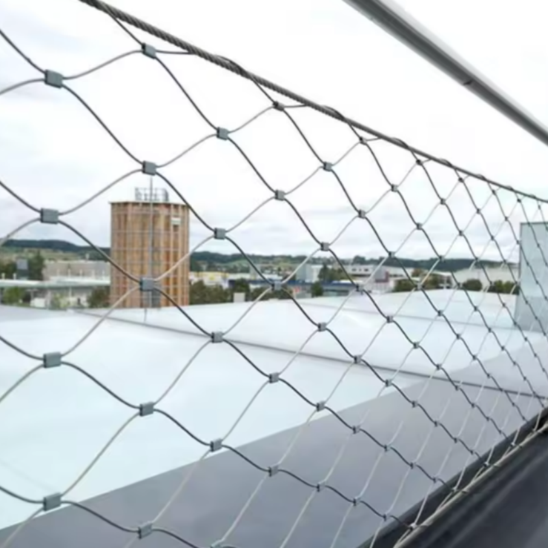 Roestvrij staal draad touw Ferruled Mesh wordt veel gebruikt alsTuinroosters van roestvrij staal, plantroosters, groene muur met flexmes, hekken van roestvrij staal, plafonds, balustradevullingen, trappenbescherming, hekken met meshEn nog meer.